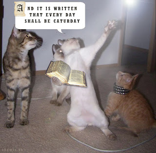 Caturday‘lerden bahsetmek de bir farz. Öncelikle uyaralım Caturday, Eski Mısır‘ın kedi tanrısı Bast‘ın övüldüğü günler değil. Caturday /b/‘den başlayan bir internet fenomeni. Bugün yine çeşitli sosyal ağlar vasıtasıyla hepimizin karşılaştığı “lolcats” fenomeninin çıktığı yer. Her Caturday dünyanın dört bir yanından insanlar kendilerini kediler üzerinden ifade ediyorlar. İletişim devrimi mi dediniz? Kedilerin sağlığına duacı olmalıyız.