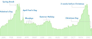 Hemen aşağıda Facebook’ta ”Break Up’‘ kelimesinin status update’lerde kullanılma frekansının aylara göre dağılımını bulabilirsiniz.