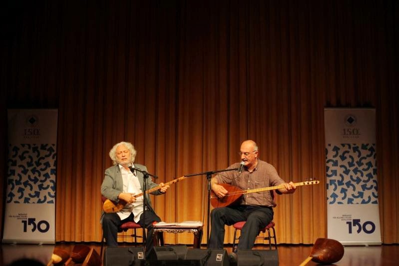Boğaziçi Üniversitesi’nin 150.Yıl Etkinlikleri kaldığı yerden devam ediyor. Etkinlikler kapsamında gerçekleşen konserlerden biri de 24 Ekim Perşembe akşamı Albert Long Hall‘da gerçekleşti. Türk Halk Müziği’nin ustaları Erkan Oğur ve İsmail Hakkı Demircioğlu‘nun sahnesi, bizleri 15. yüzyıldan günümüze uzanan harika bir zaman yolculuğuna çıkardı. Usta müzisyenler Yunus Emre‘den, Pir Sultan Abdal‘dan ve anonim halk ozanlarından derledikleri manileri sesleriyle taçlandırdı. Erkan Oğur eğlenceli olmayacaklarını iddia etse de türkülerin arasında mütevazi, sıcak ve espirili sohbetlerle konseri renklendirdi.